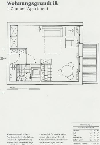 Wohnfläche ca. 33,60 m² mit optimalem Grundriß,